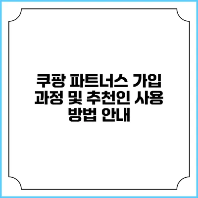 쿠팡 파트너스 가입 과정 및 추천인 사용 방법 안내