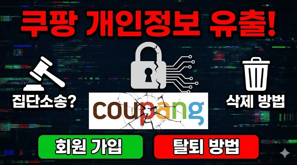 쿠팡 개인정보 유출 사건으로 많은 분들이 불안과 분노를 느끼고 계십니다. 2025년 11월 약 3370만 개 계정의 개인정보가 유출되면서 집단소송 움직임이 본격화되고 있는데요. 이 글에서는 쿠팡 개인정보 유출 사건의 전말, 집단소송 현황, 개인정보 삭제 방법, 회원 가입 및 탈퇴 방법까지 상세히 정리했습니다.