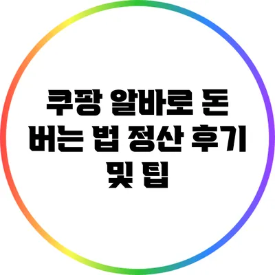 ✅ 쿠팡 알바의 실제 정산 현황과 팁을 알아보세요.