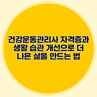 건강과 운동 관리는 현대인에게 매우 중요한 주제입니다. 많은 사람들이 건강 문제로 고심하고 있으며, 이를 해결하기 위해 다양한 방법을 모색하고 있습니다. 그 중 두 가지 주요 요소는 건강운동관리사 자격증 취득과 생활 습관 개선입니다. 이번 포스트에서는 이 두 가지 주제에 대해 깊이 있는 내용을 살펴보도록 하겠습니다.
